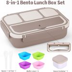 • 8-in-one: You will get 1 Brown Bento Box, 1 Spoon, 1 Fork, 1 plastic Sauce Jar and 4 silicone Muffin Liners. This bento box set can meet your needs for daily dining accessories