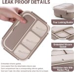 Home Home & Kitchen Bento Box Adult Lunch Box, Containers for Adults Men Women with 4 Compartments, Lunchable Food Container with Utensils, Sauce Jar, Muffin Liners, 40 Oz/5 Cup, Microwave & Dishwasher Safe, Brown