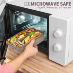 • Leak-proof Design: The lunch box’s lid has embedded silicone gasket and 4 locking buckle. Each compartment has a corresponding silicone gasket. All-round seal, no worry about food leak out