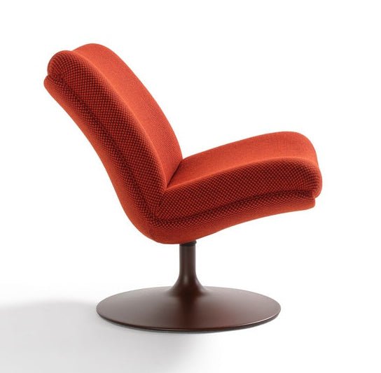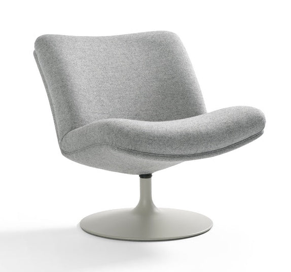 The F 504 Lounge Chair by Artifort, designed by Geoffrey D. Harcourt RDI, is a refined expression of 1980s modernism reimagined for contemporary interiors. Its sculptural silhouette—defined by a generous, enveloping seat and a gracefully rounded backrest—offers both visual softness and ergonomic support. The chair swivels effortlessly on a sleek disc base, making it a practical yet elegant choice for both private lounges and public spaces. With its understated curves and balanced proportions, the F 504 speaks to Harcourt’s enduring philosophy: design that prioritizes the user’s comfort above all.