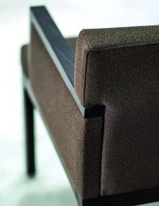 Materials: Lounge chair with structure in natural, stained, or matt lacquered beech. Seat and backrest upholstered in leather or fabric.