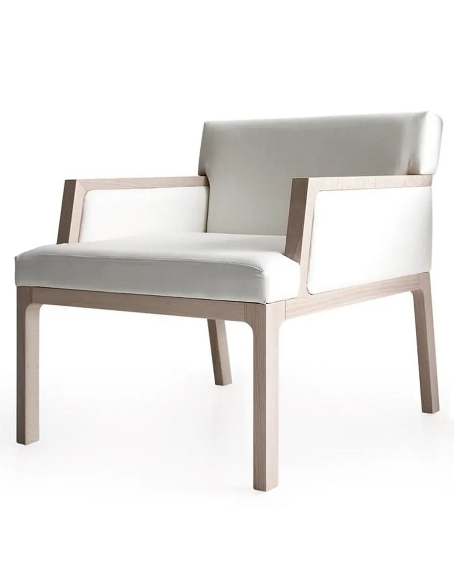 The Flux Lounge Chair, designed by Emilio Nanni for Bross Italia, is a sophisticated piece that combines elegance with versatility. This contemporary seating solution features a refined beechwood frame that can be customized with natural, stained, or matt lacquered finishes to suit various interior styles. The chair offers exceptional comfort through its generously upholstered seat, which can be finished in either fabric or leather to match any design preference.